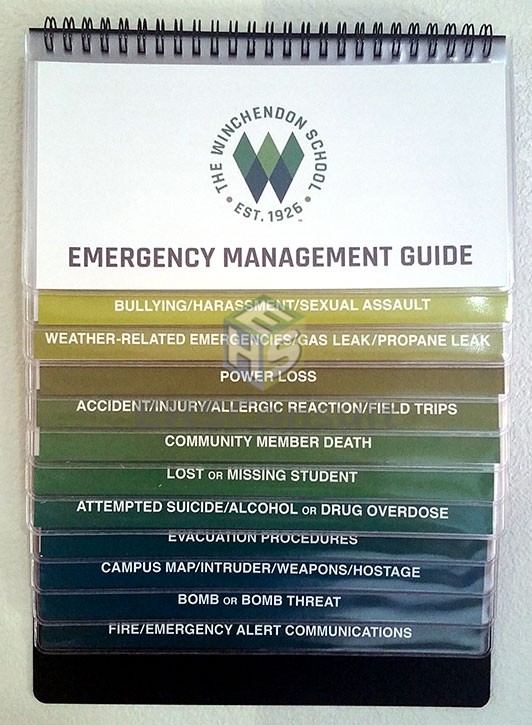 We’ll personalize the first page with your logo, school name, branding colors, and an optional cover image. There’s also a blank page inside to affix a facility map or other site-specific information. Small page substitutions may be possible; larger edits may require a custom quote.